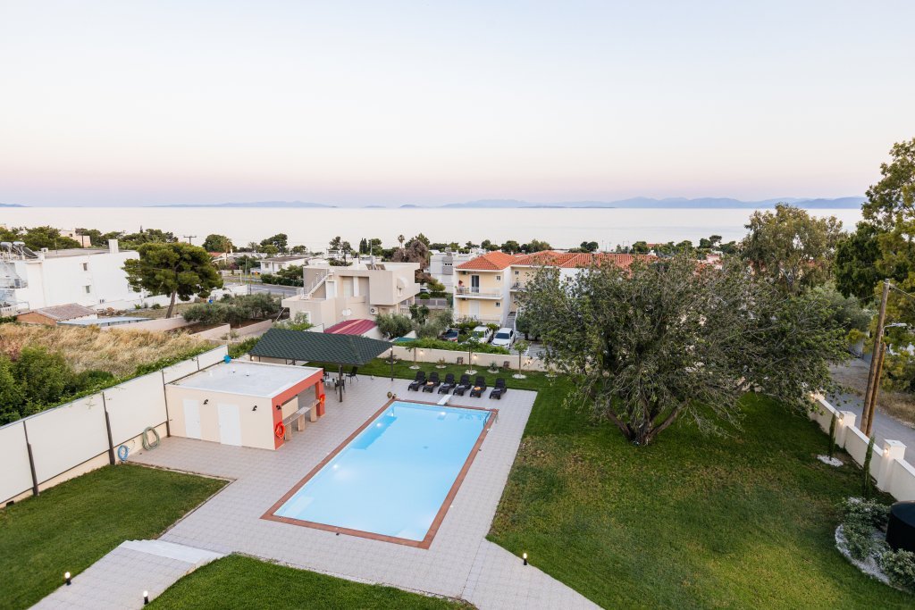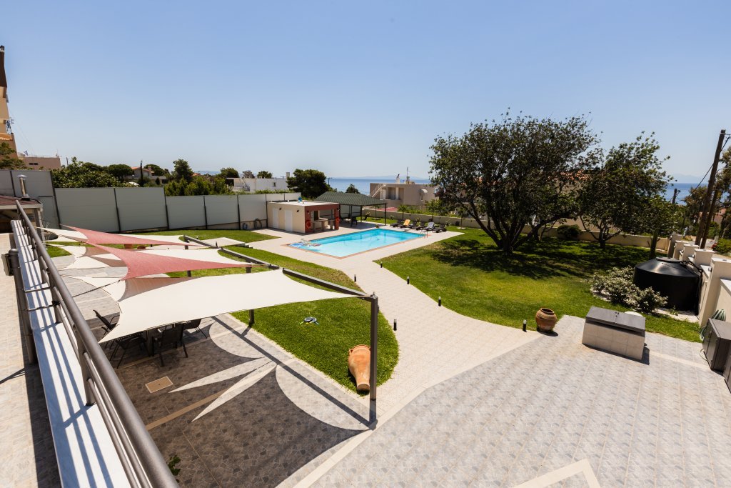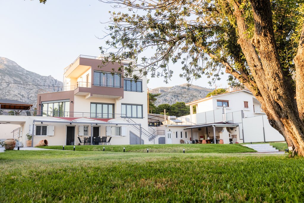 Ολόκληρος ο εξωτερικός χώρος της βίλας σε μία εικόνα.