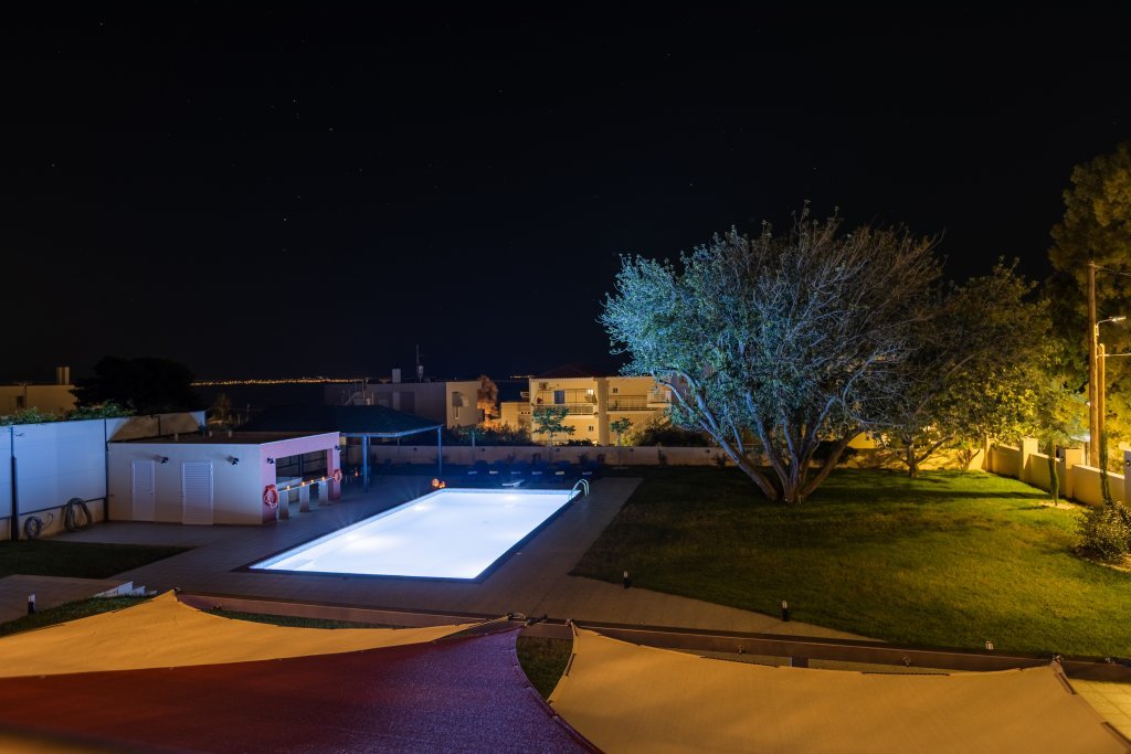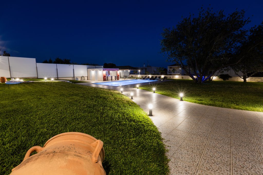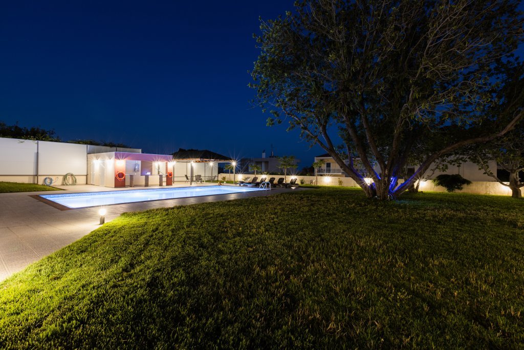 Η πισίνα και ο κήπος φωτισμένοι, δημιουργούν ιδανική ατμόσφαιρα για βραδινή χαλάρωση.