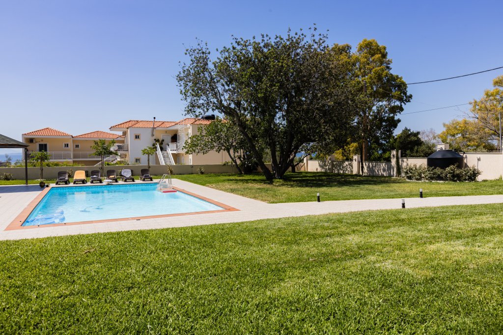 Ευρύχωρος κήπος με πισίνα και απόλυτη αίσθηση ιδιωτικότητας.